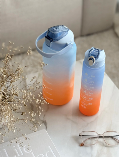 Prácticas, livianas y con diseño moderno, ideales para acompañarte en tu rutina diaria. Cada botella cuenta con medidor y tapa a rosca segura, perfectas para llevar en la cartera, mochila o al gimnasio.